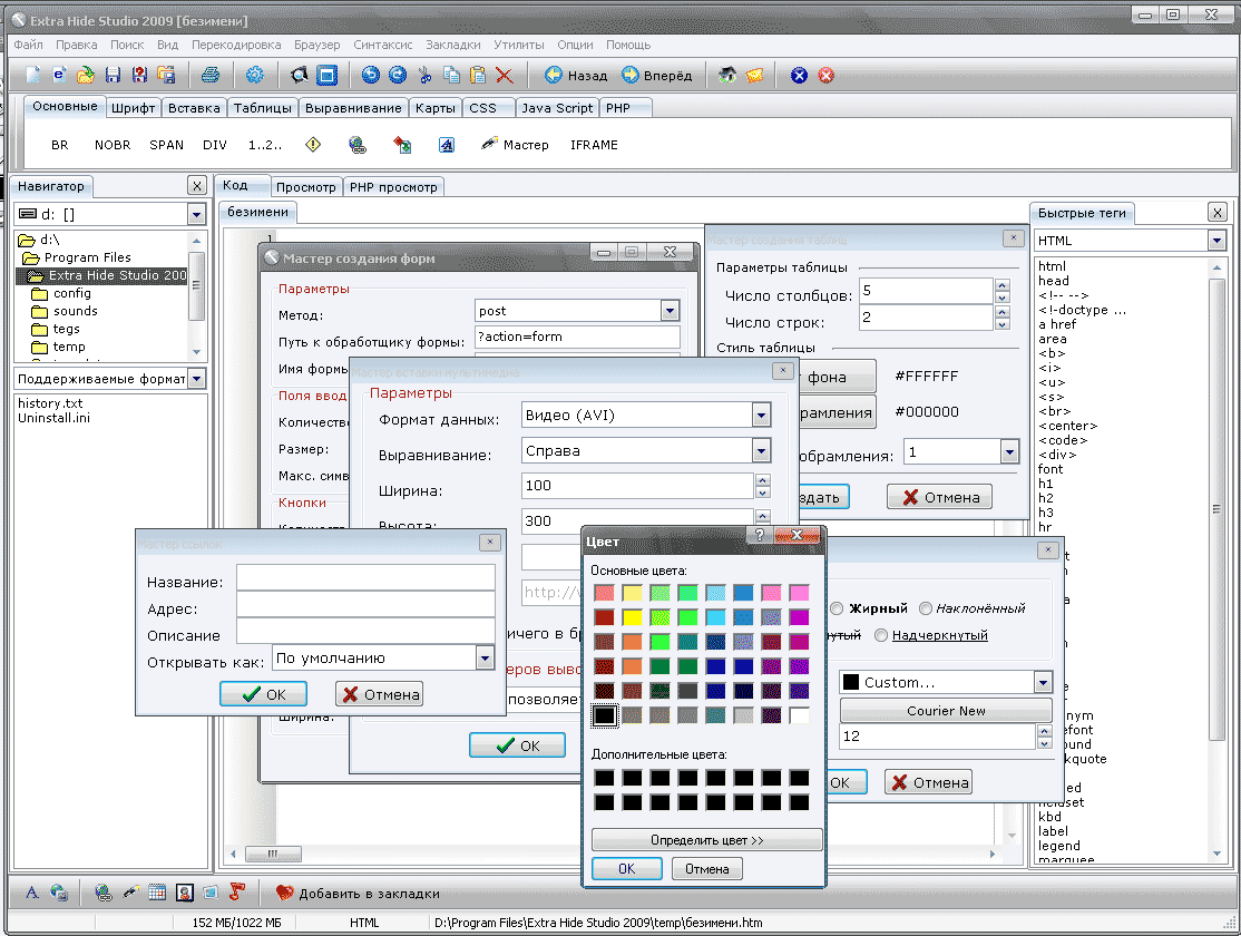 Extra Hide Studio 2009 — это студия для создания и редактирования HTML страниц, документов, исходных текстов программ и PHP скриптов.
